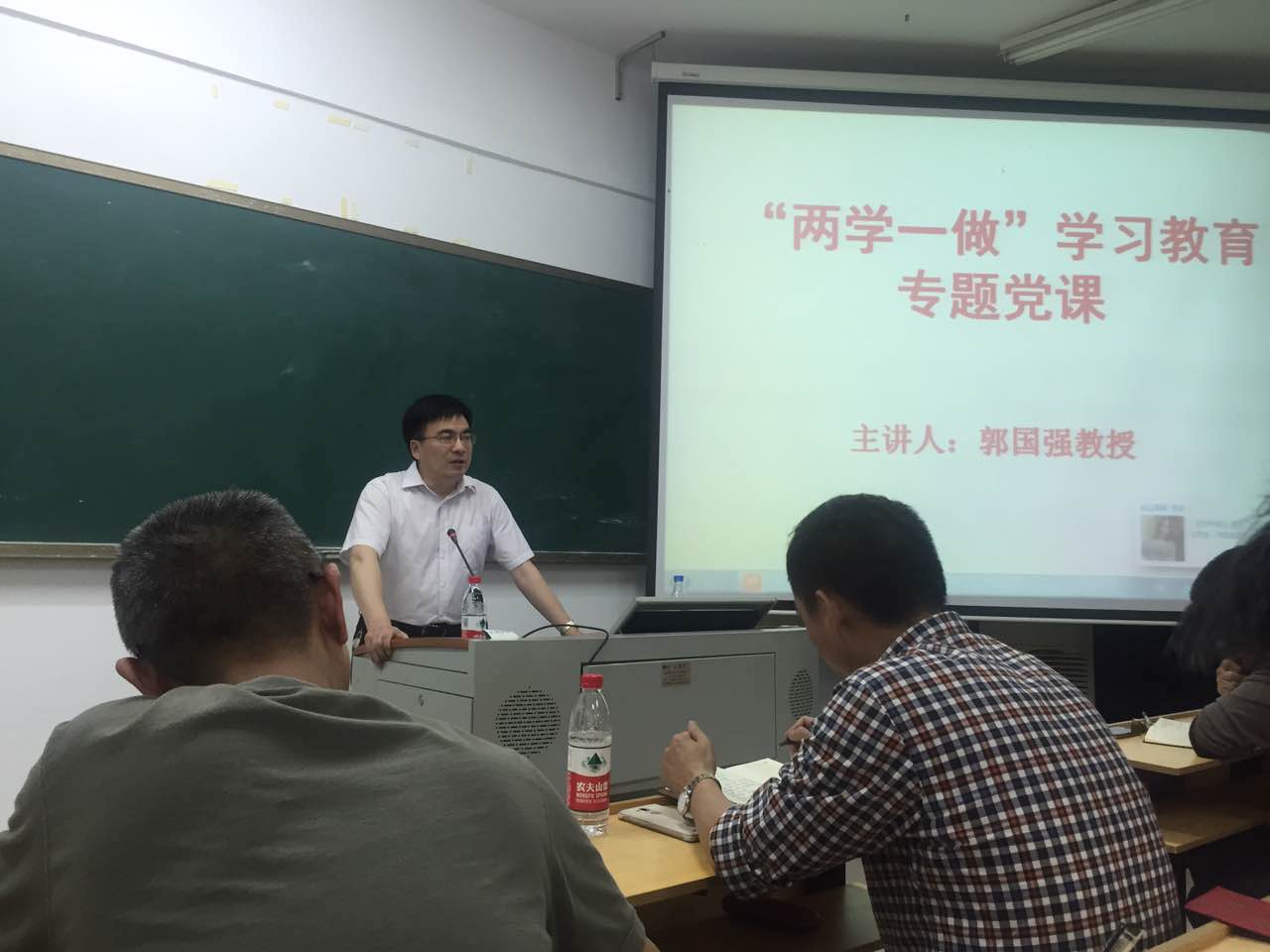 5月24日晚八点,郭国强副校长在E3-A613给我院全体党员上党课。他授课主题为:坚定中国自信,实现中国梦。我院全体党员教师、部分学生党员共同参与听课。